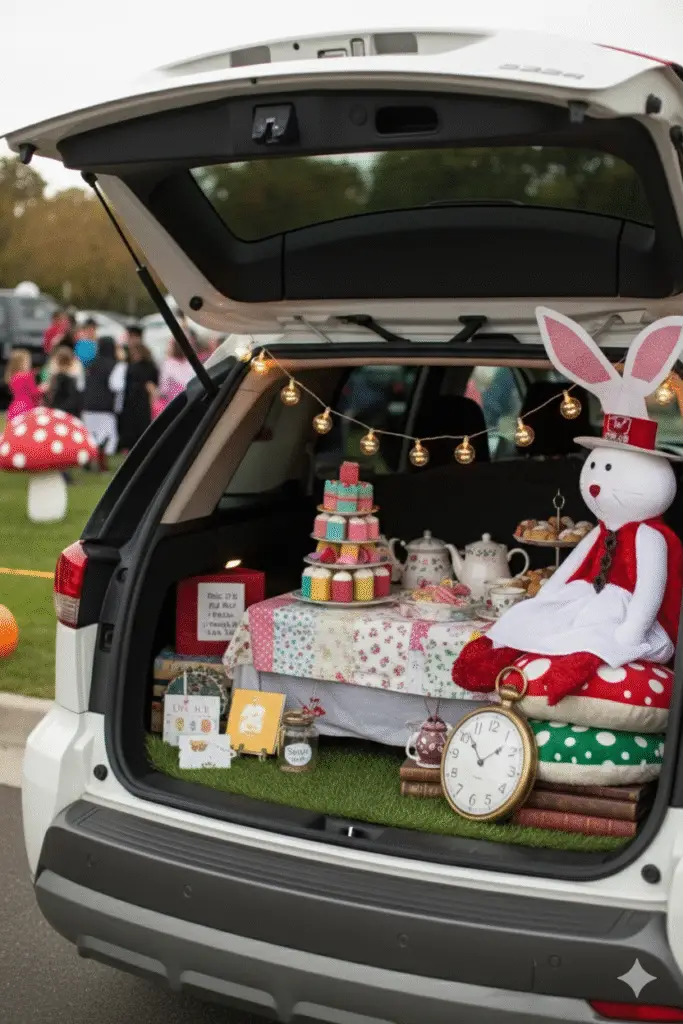 Follow Dorothy and friends by laying out a yellow brick runner leading to your trunk. Add props like ruby slippers, a basket, or a scarecrow for an instant Wizard of Oz vibe.