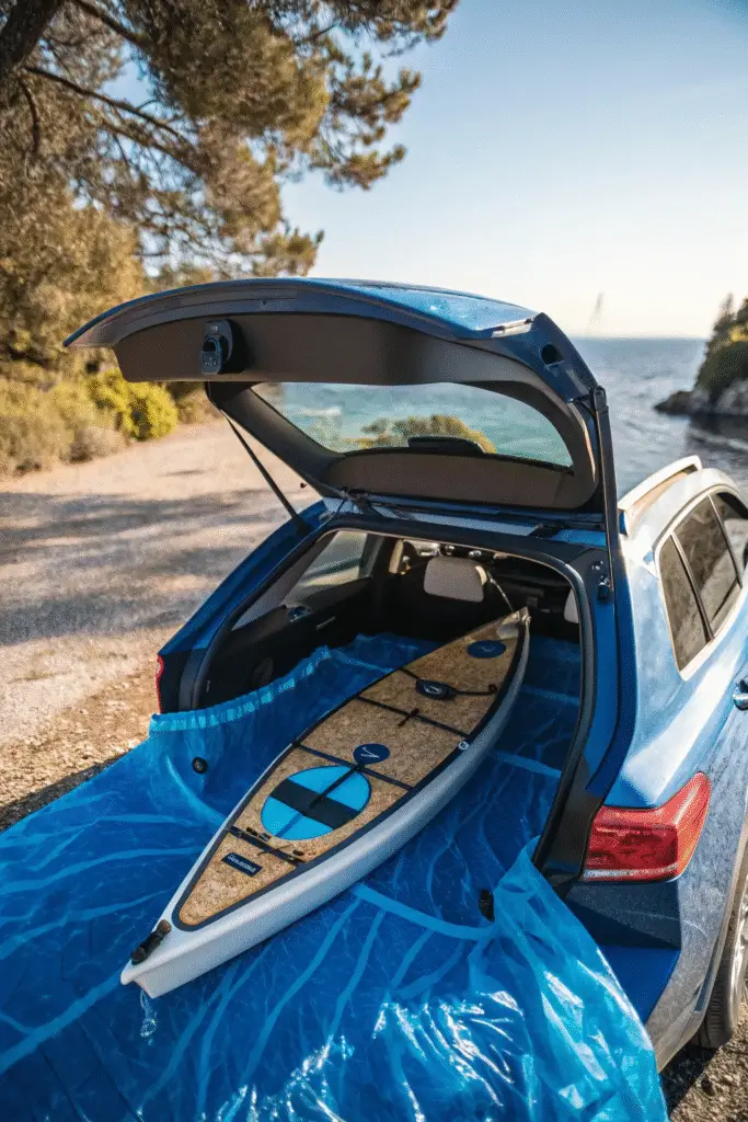 If you’re into outdoor adventures, turn your trunk into a mini lake scene with a kayak, blue fabric for water, and fish props. Unique and fun!