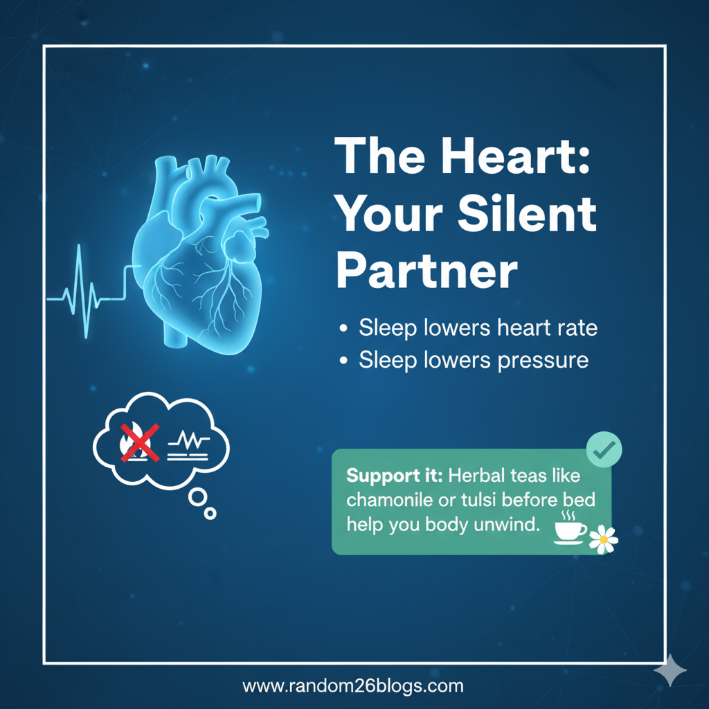 Sleep gives your heart and hormones a much-needed reset. During deep sleep, your heart rate and blood pressure drop, reducing stress on your cardiovascular system. Without this nightly rest, cortisol — the stress hormone — remains high, increasing inflammation and long-term heart risk.